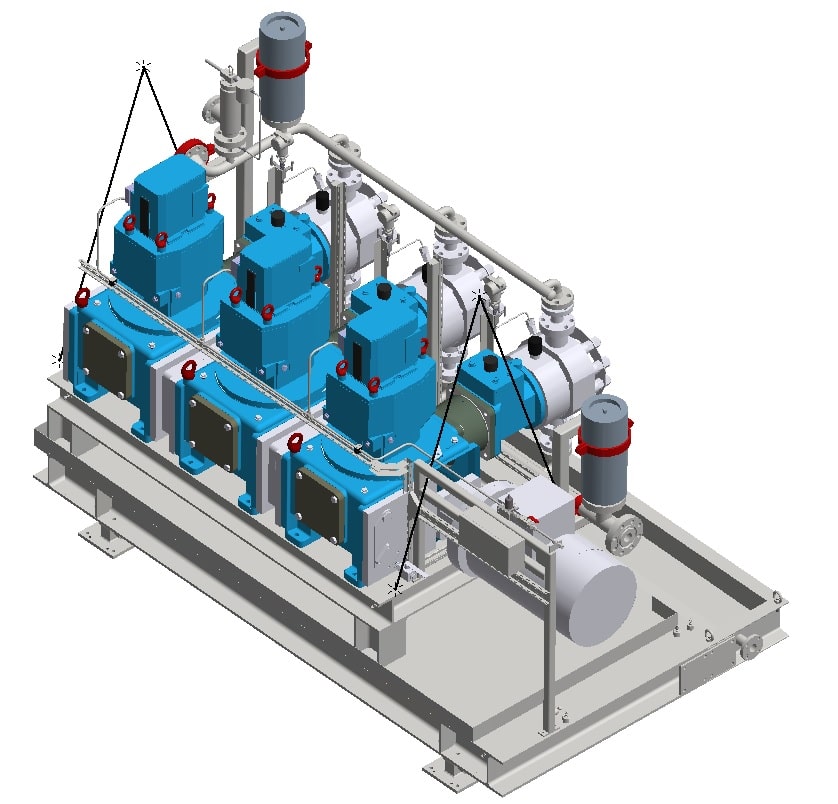 Novateq Engineering BV heeft op basis van door de klant geleverde specificaties skids ontworpen voor voor diverse pompsystemen. Het betreft complete systemen, inclusief regelkleppen, regelaars enz.